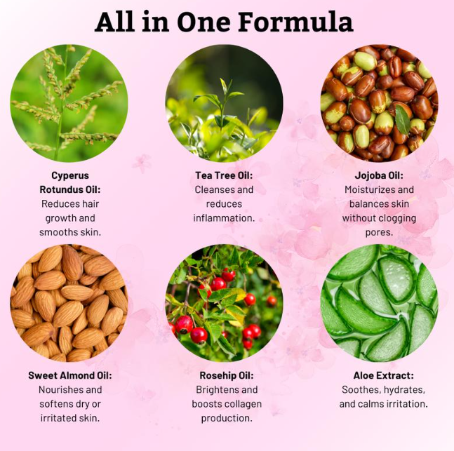 Rotundus Oil does not remove hair on its own—it works by slowing regrowth after your normal hair removal routine.